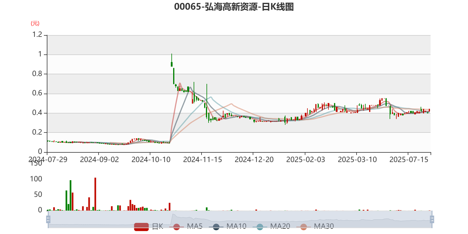 以7月29日收盘价计算,弘海高新资源目前市净率(TTM)约0.62倍,市销率(TTM)约0.5倍。
