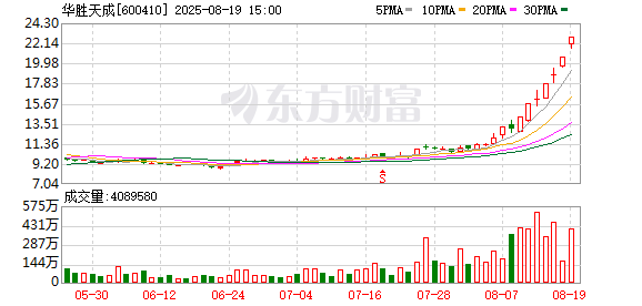截至8月19日收盘,华胜天成再度涨停,报收22.75元/股。自8月7日以来,该股9天6涨停,累计涨幅接近90%,年内累计涨幅更是超过210%。