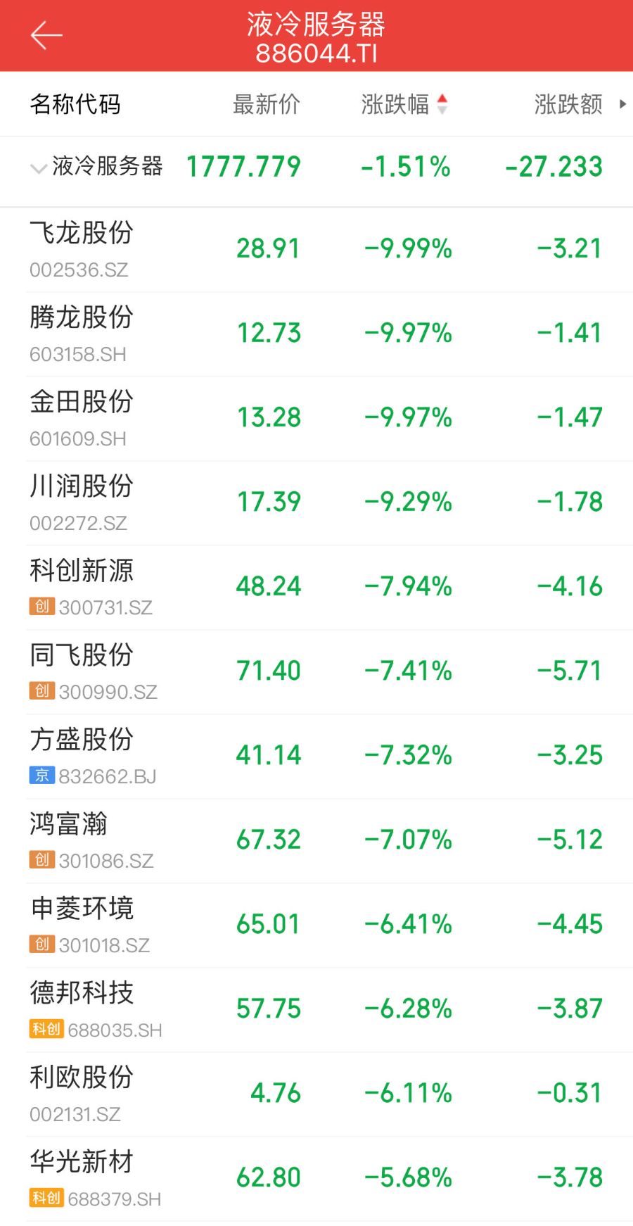 液冷板块的退潮来得迅猛而惨烈。8月21日,液冷服务器概念集体跳水,飞龙股份(002536.SZ)腾龙股份(603158.SH)均开盘闪崩触及跌停,英维克(002837.SZ)、科创新源(300731.SZ)、冰轮环境(000811.SZ)跌超5%。