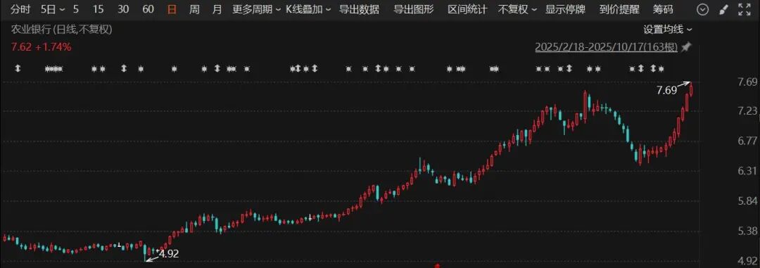市场热点方面,以银行股为代表的高股息蓝筹股逆市走强,银行板块指数连续7日上涨,逼近历史最高点。值得一提的是,农业银行日K线罕见地连续11日收阳,股价创历史新高,厦门银行、青岛银行、江阴银行等近来也保持连续上扬的走势。