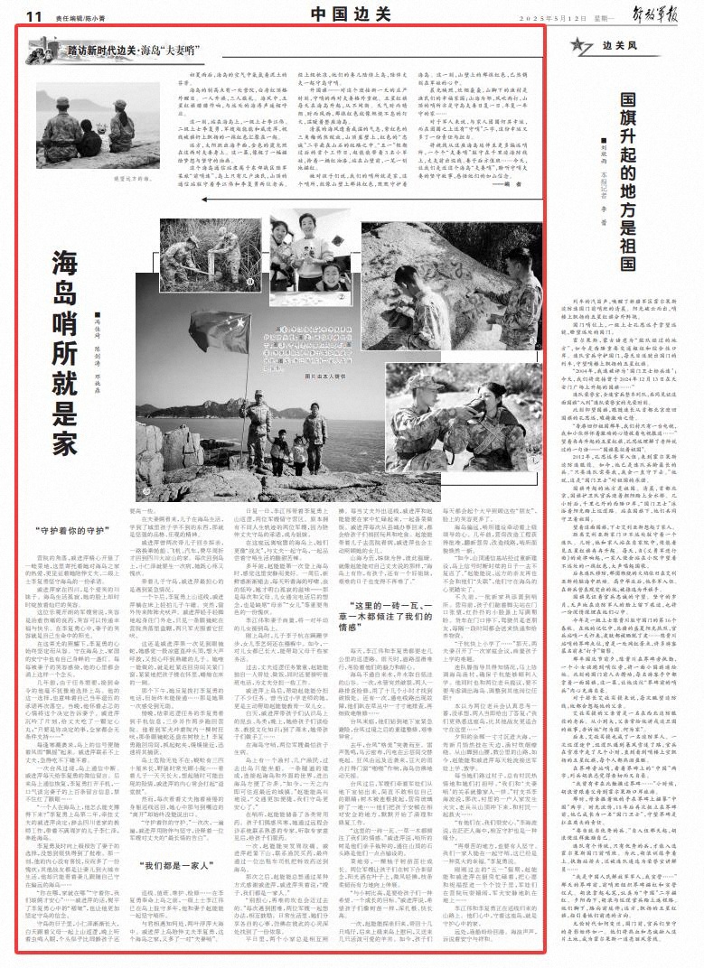 将视线从这座海岛延伸至更多偏远哨所,一个个“夫妻哨”驻守在千里边海防线上,丈夫前出巡线、妻子后方值班……今天,让我们走近这个海岛“夫妻哨”,聆听守哨夫妻的坚守故事,感悟他们的如山信念。