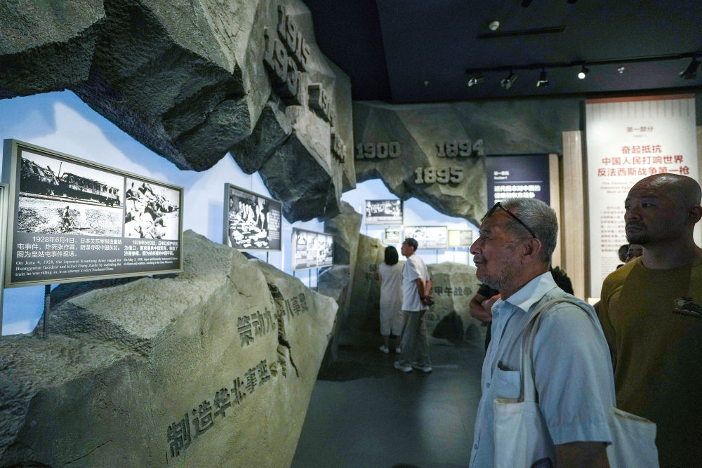 参观者在中国人民抗日战争纪念馆参观《为了民族解放与世界和平》主题展览。新华社记者 张晨霖 摄