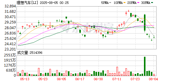 7月29日,理想汽车i8发布当日,美股市场中的理想汽车盘前一度因新品发布上涨6%,但开盘后急转直下,收跌6.20%,截至8月1日,股价累计跌幅达13.53%。