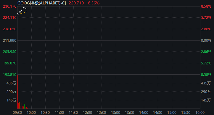 当地时间9月3日,谷歌大幅高开高走,股价刷新历史纪录。截至发稿,谷歌C涨超8%,总市值突破2.77万亿美元。
