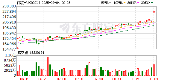苹果9月3日亦大涨超3%。分析认为,梅塔的裁决对苹果公司等智能设备制造商也构成利好,因为今后谷歌仍可每年支付数以十亿计美元,换取智能设备制造商把谷歌搜索引擎设为默认搜索引擎。