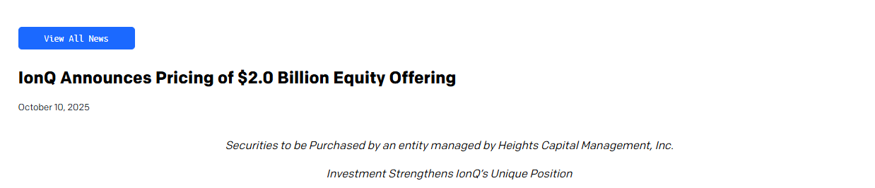 具体来看,IonQ售出了1650万股普通股,每股价格为93美元;以及预先出资的认股权证,可购买5,005,400股IonQ普通股,标价也为每股93美元——较IonQ 10月9日的收盘价溢价20%。