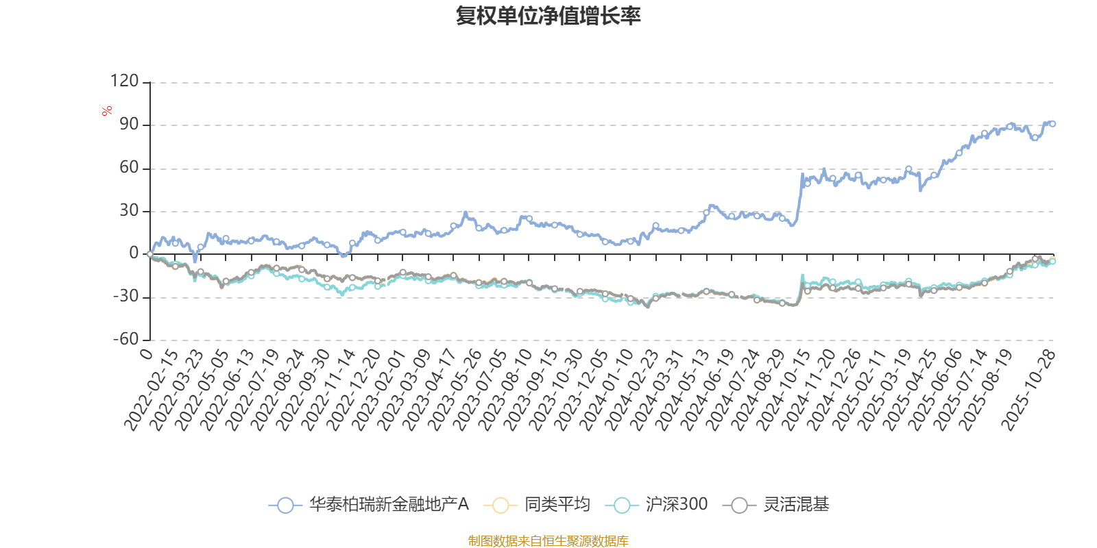截至10月28日,华泰柏瑞新金融地产A近三个月复权单位净值增长率为1.52%,位于同类可比基金1129/1287;近半年复权单位净值增长率为23.08%,位于同类可比基金670/1287;近一年复权单位净值增长率为25.88%,位于同类可比基金520/1287;近三年复权单位净值增长率为91.90%,位于同类可比基金29/1286。