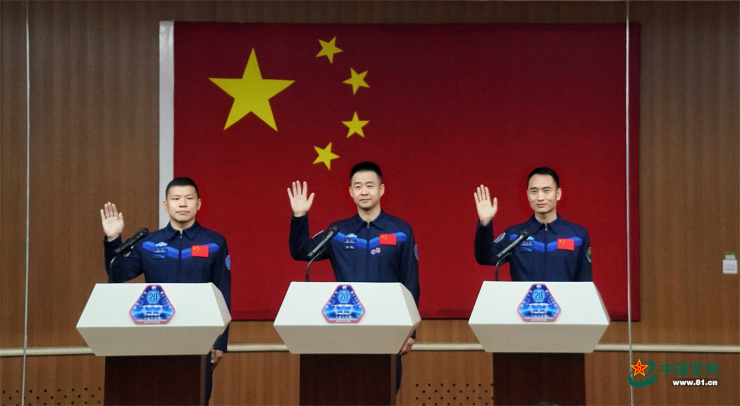 中国军网酒泉4月23日电(记者王粲 杨徐子琳)据中国载人航天工程办公室消息,经空间站应用与发展阶段飞行任务总指挥部研究决定,执行神舟二十号载人飞行任务的航天员乘组由陈冬、陈中瑞、王杰3名航天员组成,陈冬担任指令长。神舟二十号载人飞行任务瞄准4月24日17时17分发射。北京时间2025年4月23日,3名航天员在酒泉卫星发射中心问天阁与中外媒体记者集体见面。